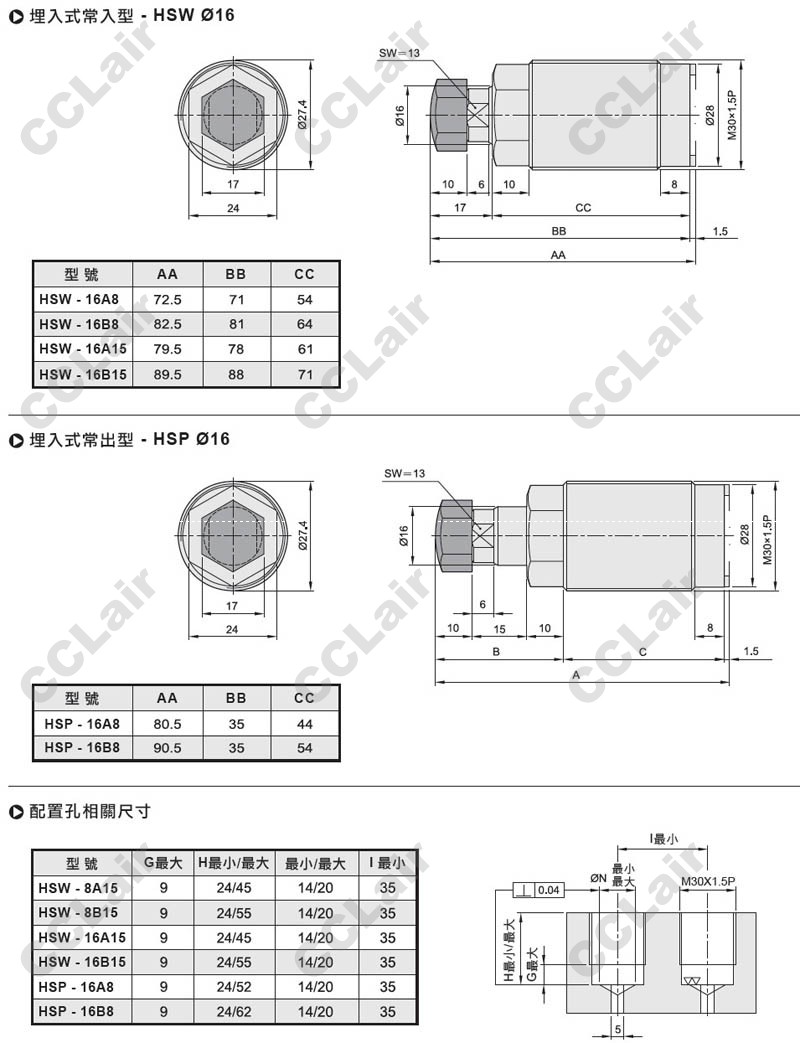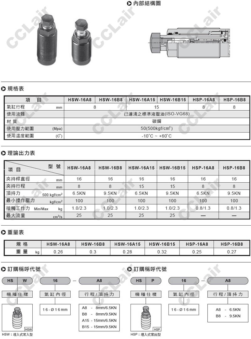 氣立可(chelic),HSW16-A8,HSW16-B8,HSW16-A15,HSW16-B15,HSP16-A8,HSP16-B8,螺栓式單動(dòng)頂持缸