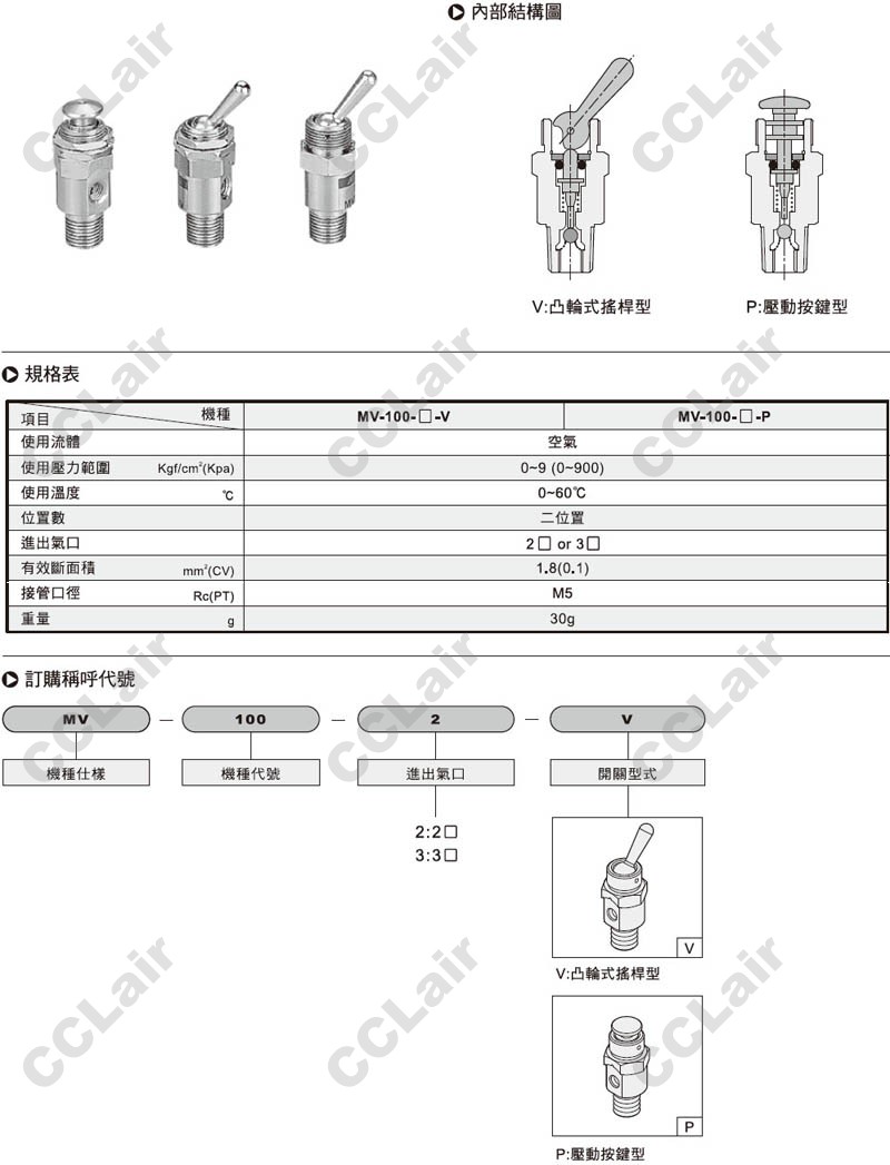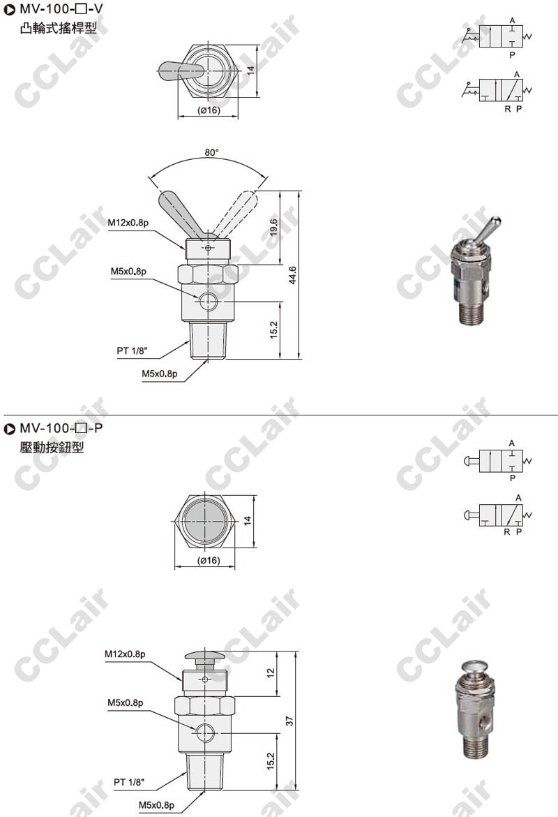 氣立可(chelic),MV-100-2-V,MV-100-3-V,MV-100-2-P,MV-100-3-P,手動閥 |