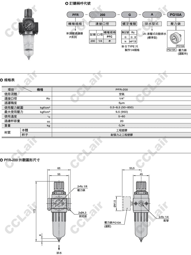 氣立可(chelic),PFR-200-G-A-PG10A,PFR-200-N-A-PG10A,PFR-200-A-PG10A,空氣調(diào)理組合