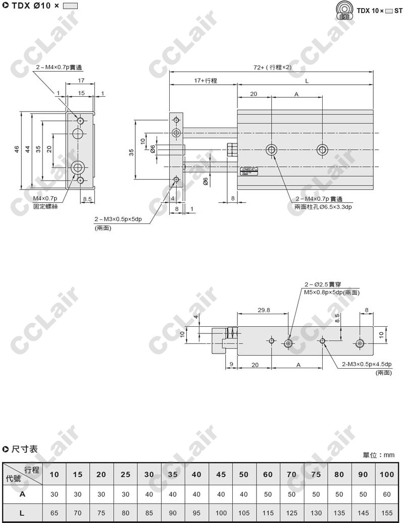 氣立可(chelic),TDX10*10-ST2,TDX16*20,TDX20*25,TDX25*35,TDX10X60,TDX2X80,TDX25X50,雙軸氣缸