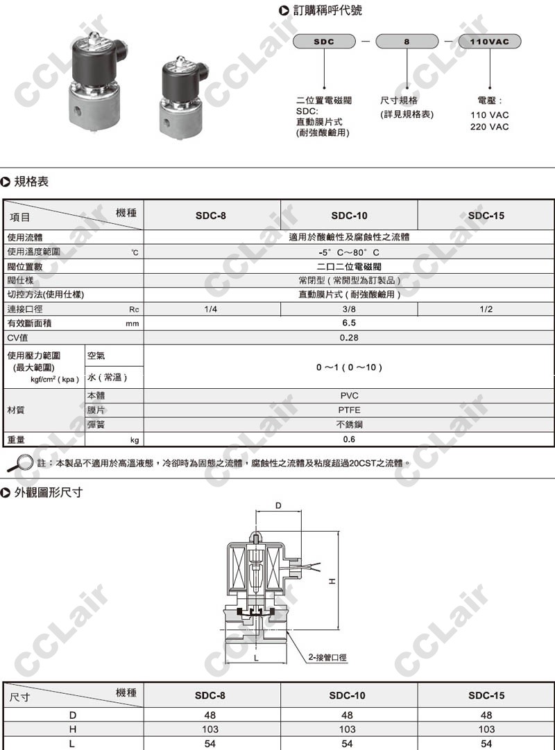 氣立可(chelic),SDC-8-220VAC,SDC-10-220VAC,SDC-15-220VAC,SDC-8-110VAC,電磁閥 |