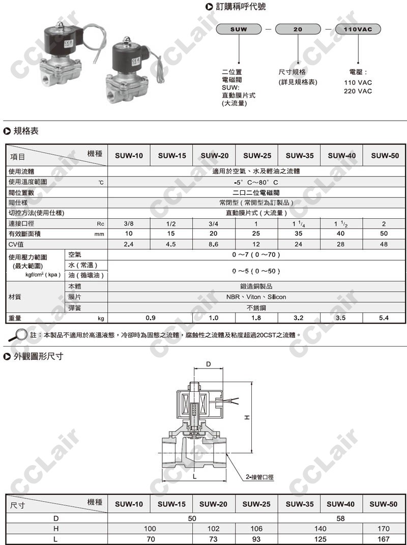 氣立可(chelic),SUW-20,SUW-25,SUW-35,SUW-40,SUW-50,SUW-10-110VAC,SUW-15-220VAC,電磁閥