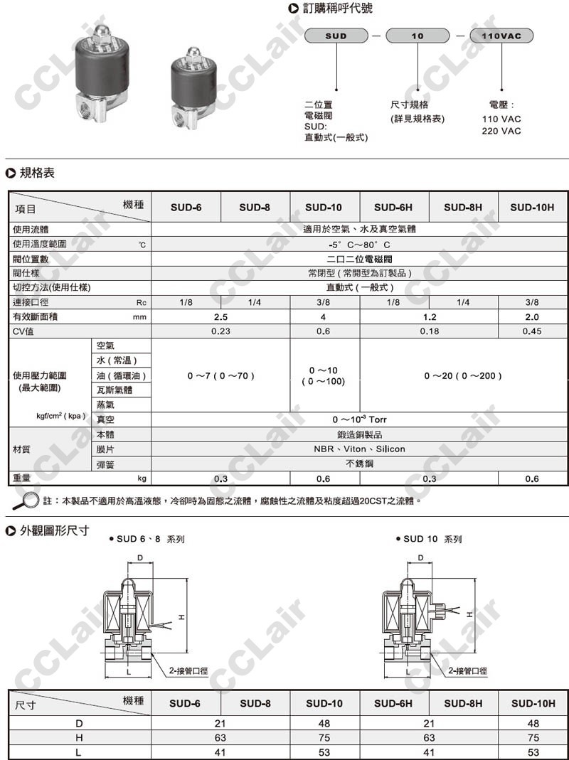 氣立可(chelic),SUD-10,SUD-6H,SUD-8H,SUD-10H,SUD-6-110VAC,SUD-8-220VAC,電磁閥