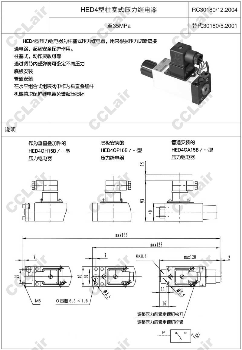 HED40,HED4OP15,HED4OA15,HED4OH15,huade柱塞式壓力繼電器