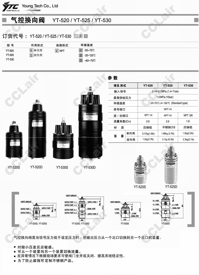 YT-520,YT-525,YT-530,YT-520S,YT-520D,YT-525S,YT-525D,YT-530S,YT-530D,YTC氣控換向閥