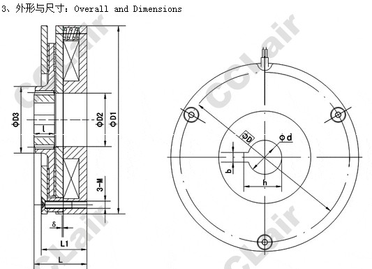 | 型號 | d | D | D1 | D2 | D3 | b | h | I | L | L1 | M | δ |