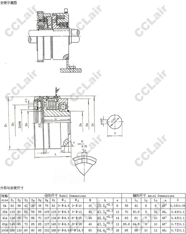 5.離合器安裝地點(diǎn)的海拔不超過(guò)2000米。