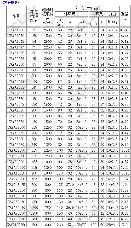 CAMA1250,CAMA1270,CAMA2463,CAMA3580,CAMA45125,CAMA50110,CAMA60140,CAMA70150,CAMA80170,單向超越離合器