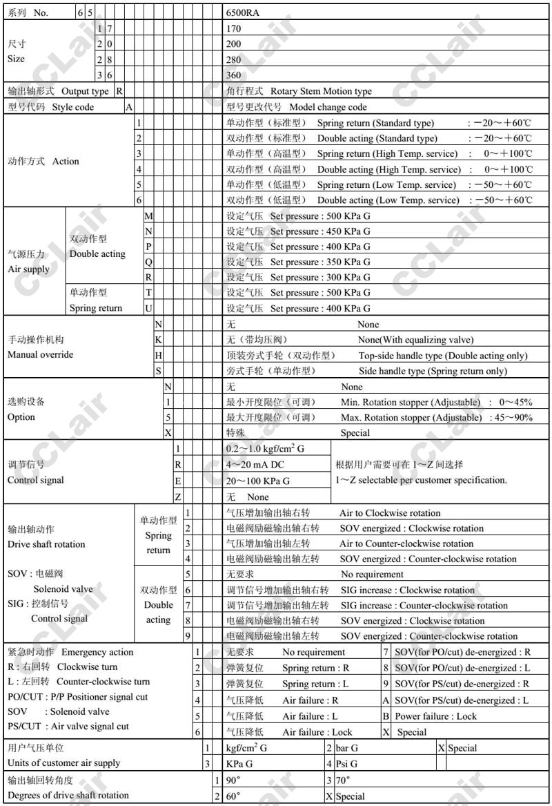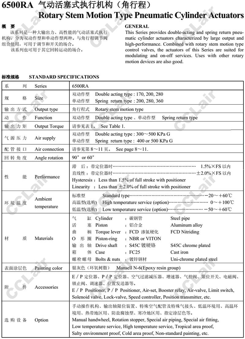 6517RA,6520RA,6528RA,6536RA,氣動活塞式執(zhí)行機構(gòu)