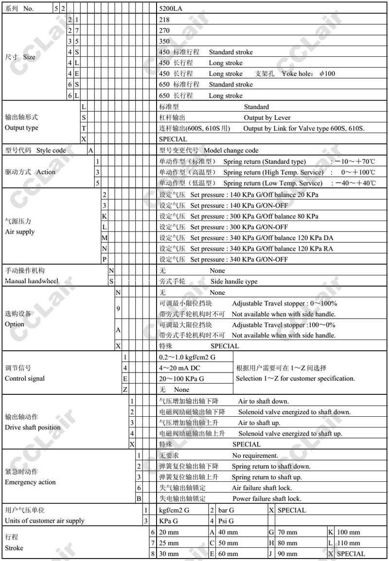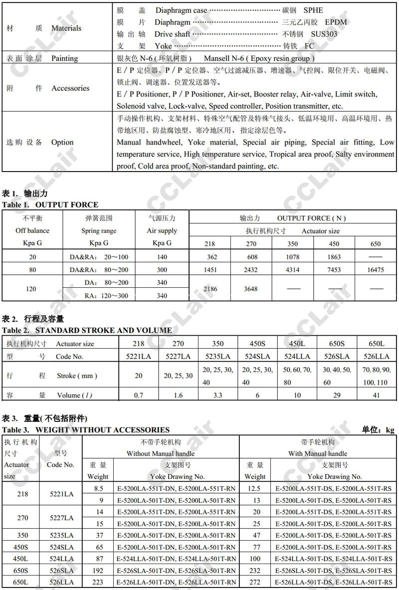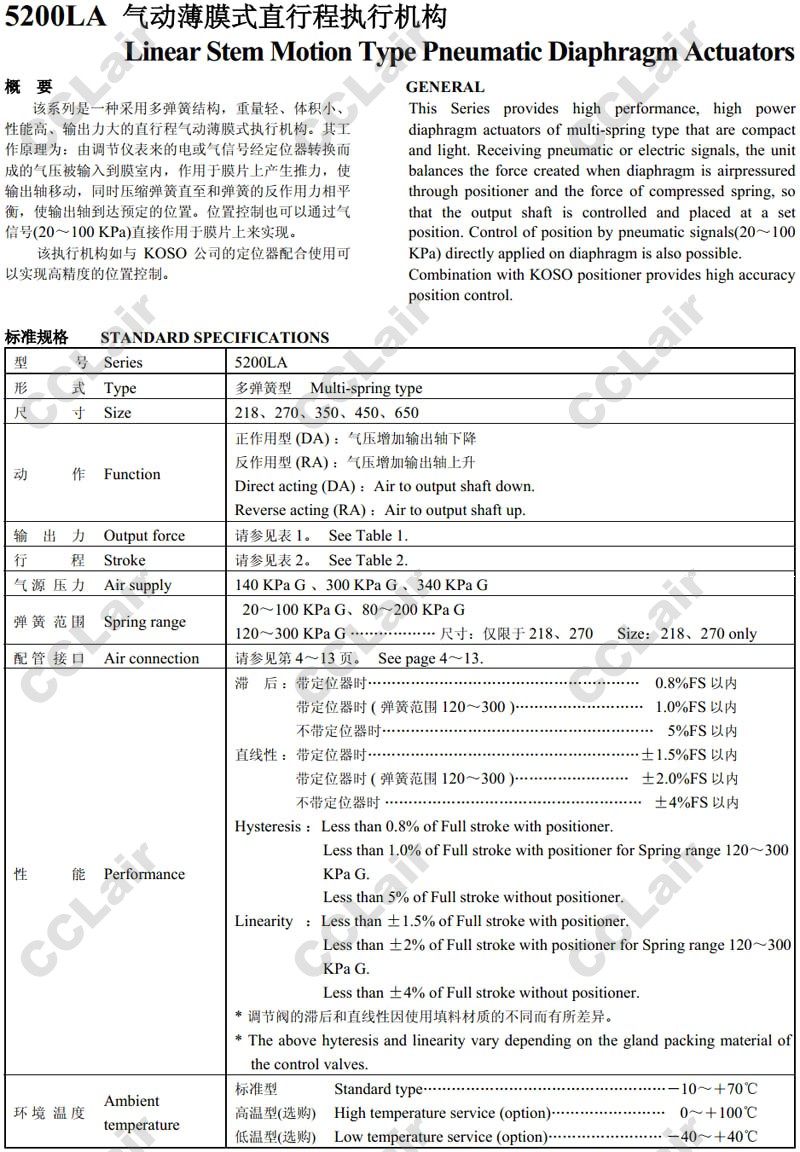 5221LA,5227LA,5235LA,524SLA,524LLA,526SLA,526LLA,氣動薄膜式直行程執(zhí)行機構(gòu) |