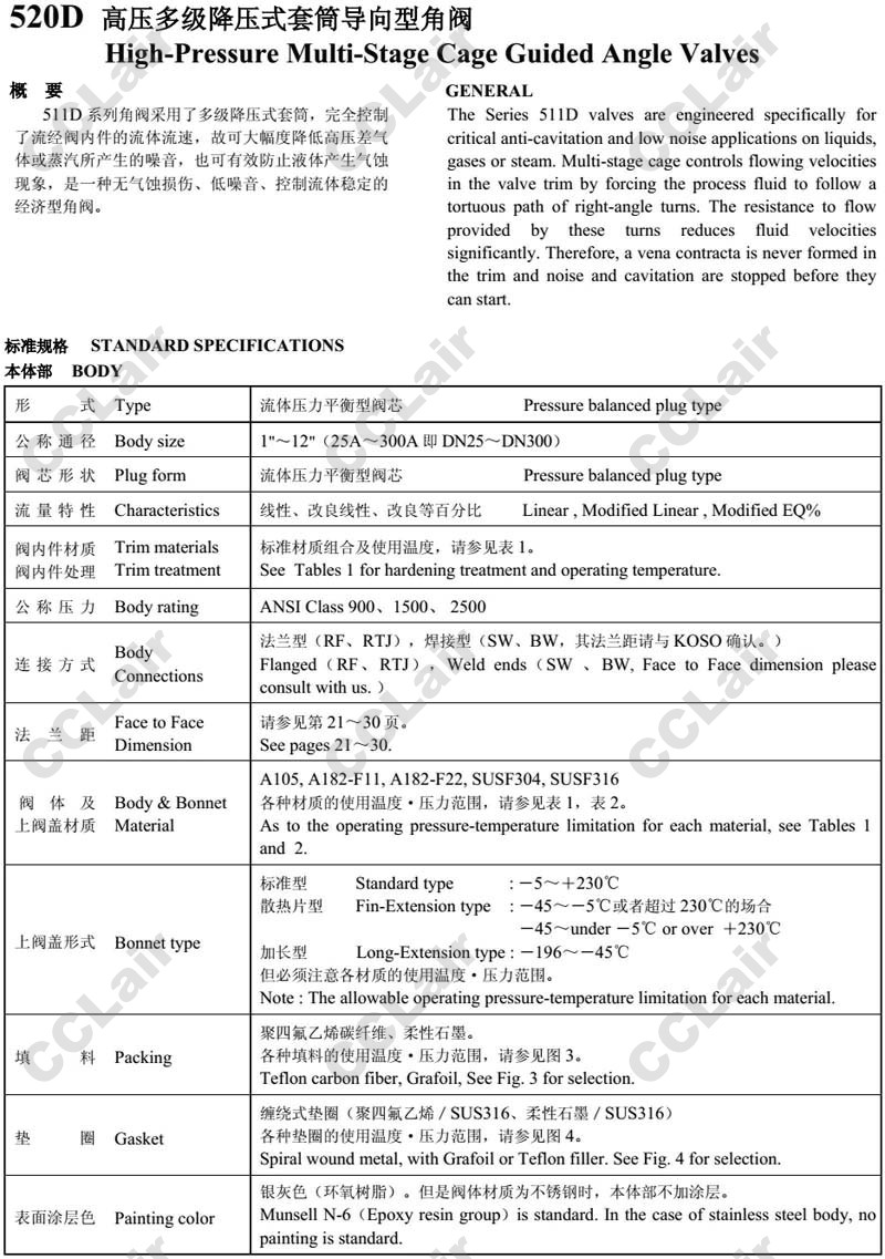 520D-5200LA,520D-6300LA,高壓多級降壓式套筒導(dǎo)向型角閥