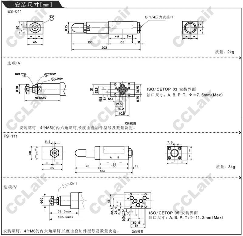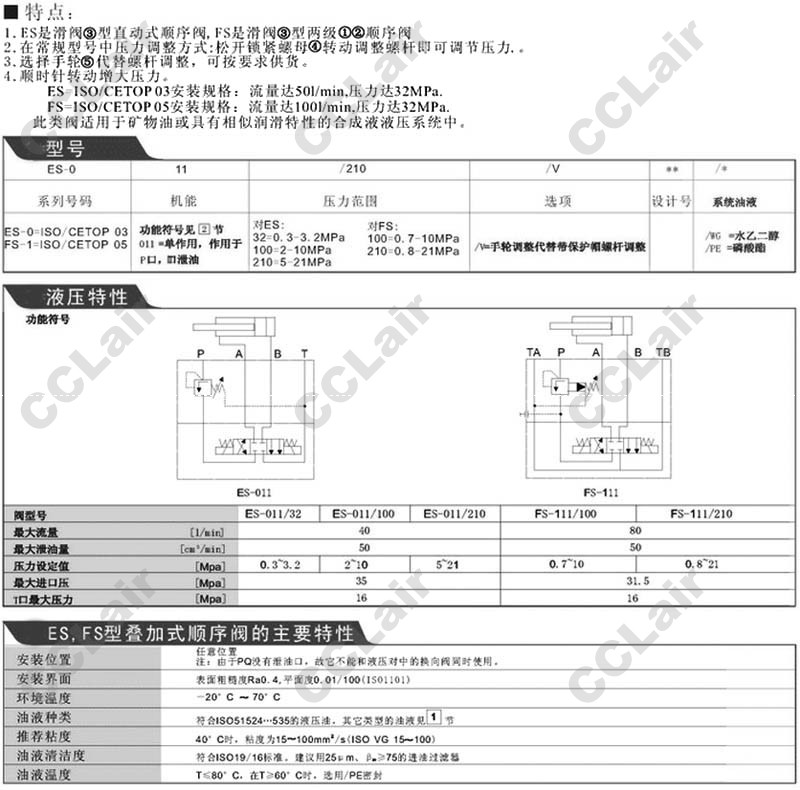 ES-011/32,ES-011/100,ES-011/210,FS-111/100,FS-111/210,疊加式順序閥