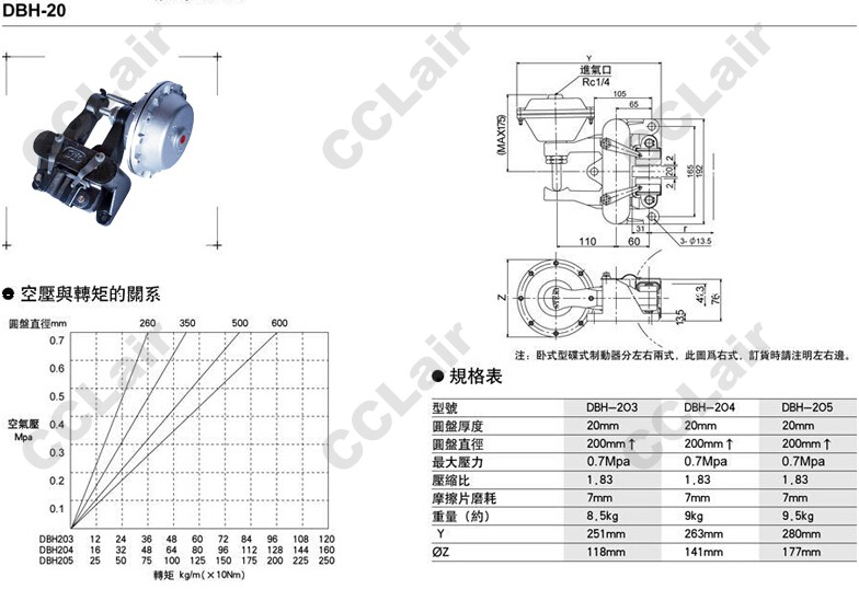 DBH-203,DBH-204,DBH-205,碟式制動器,CCLair