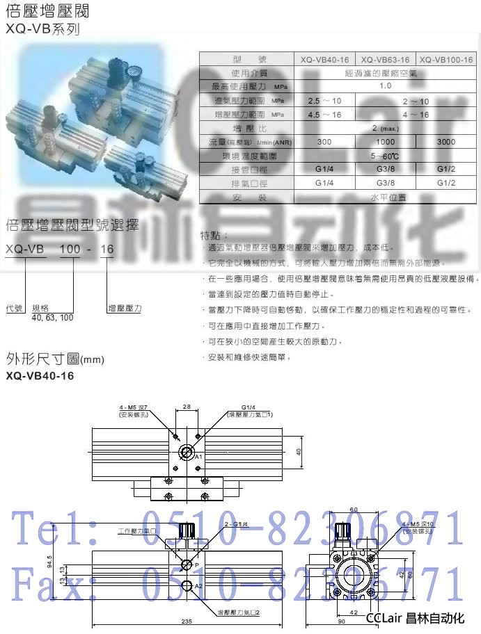 XQ-VB40-16,XQ-VB63-16,XQ-VB100-16,倍壓增壓閥