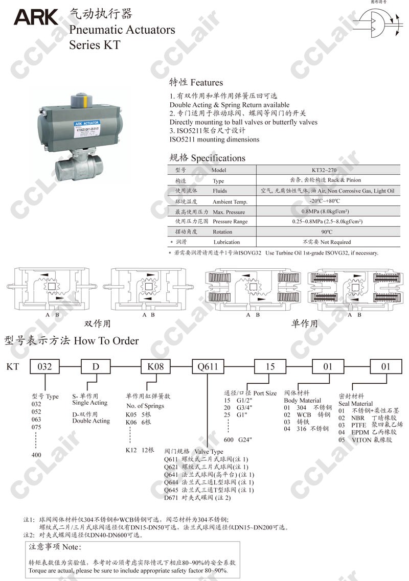 KT032,KT052,KT063,KT075,KT083,KT092,KT105,KT125,KT140,KT160,KT190,KT210,KT240,ARK氣動執(zhí)行器