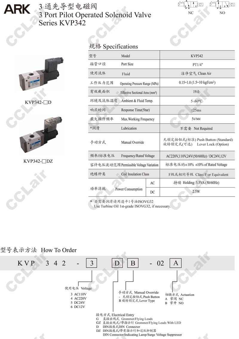 KVP342-3,KVP342-4,KVP342-5,KVP342-6,KVP342-3DZ-02B,KVP342-3G-02A,ARK3通先導型電磁閥