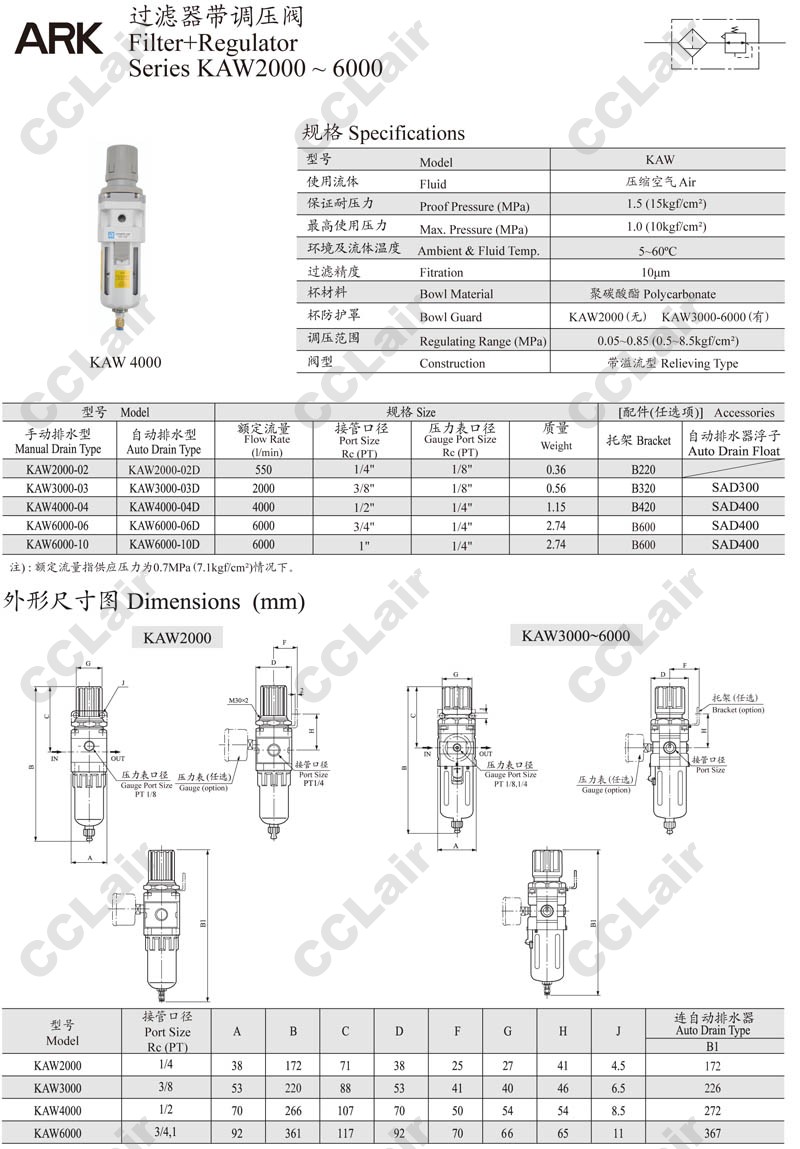 KAW2000,KAW3000,KAW4000,KAW6000,KAW6000-10D,KAW3000-03,KAW2000-02,ARK過濾器帶調壓閥