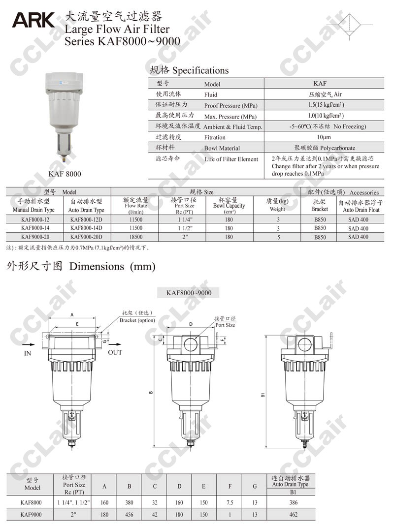 KAF8000-12,KAF8000-12D,KAF8000-14,KAF8000-14D,KAF9000-20,KAF9000-20D,ARK空氣過濾器