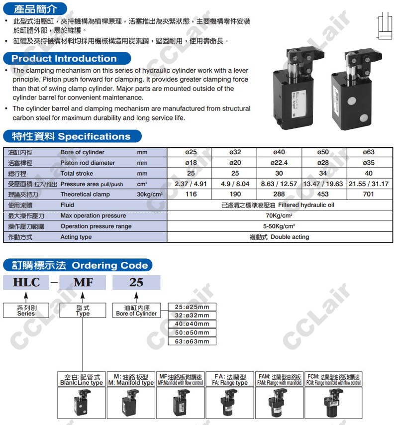 臺(tái)灣聯(lián)鎰(amac),HLC-25,HLC-32,HLC-40,HLC-M25,HLC-MF25,HLC-FA25,HLC-FAM32,HLC-FCM40,HLC-50,HLC-63,杠桿式油壓缸
