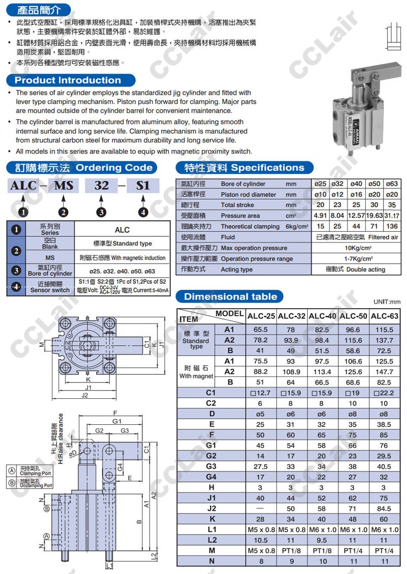 臺(tái)灣聯(lián)鎰(amac),ALC-MS25-S1,ALC-MS32-S1,ALC-MS40-S1,ALC-MS560-S1,ALC-MS63-S1,ALC-MS25-S2,ALC-MS32-S2,杠桿式空壓缸