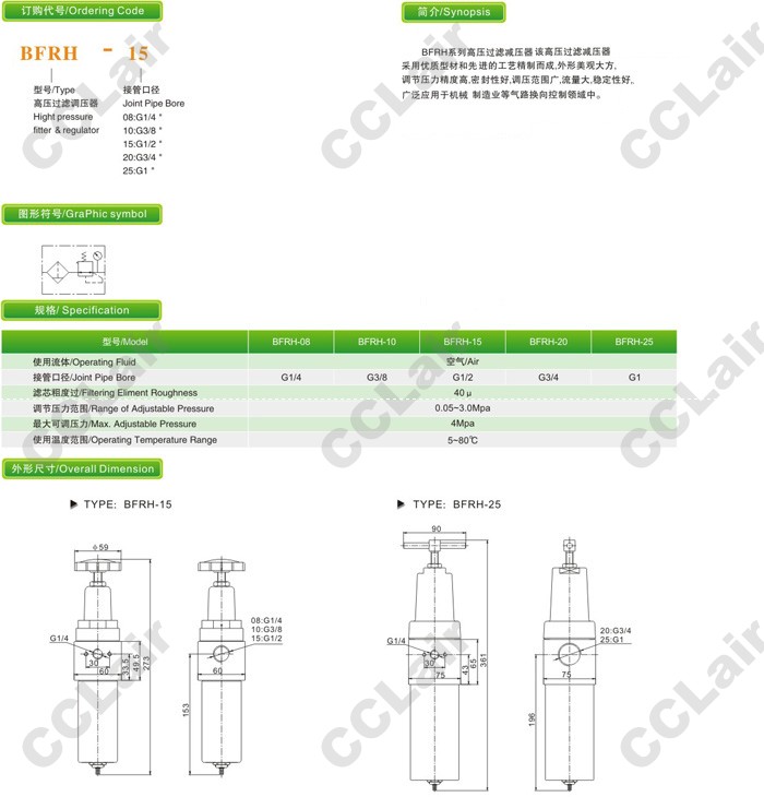 BFRH-08,BFRH-10,BFRH-15,BFRH-20,BFRH-25,過濾調(diào)壓器