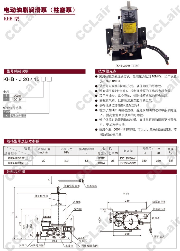 KHB-J20/15F,KHB-J20/15E,電動油脂潤滑泵