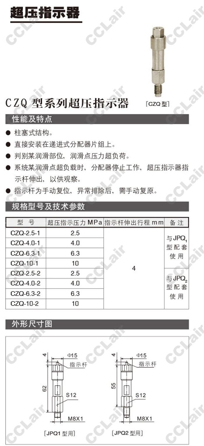 CZQ-2.5-1,CZQ-4.0-1,CZQ-6.3-1,CZQ-10-1,CZQ-2.5-2,CZQ-4.0-2,CZQ-6.3-2,CZQ-10-2,超壓指示器
