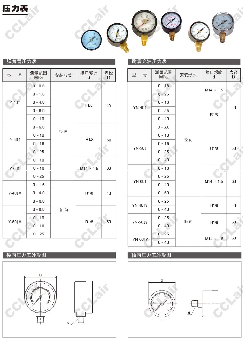 Y-40I,Y-50I,Y-60I,Y-40IV,Y-50IV,彈簧管壓力表