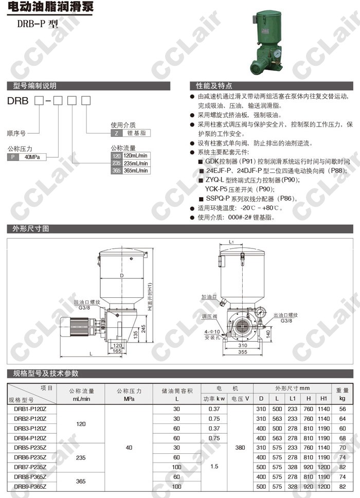 DRB1,DRB2,DRB3,DRB4,DRB5,DRB6,DRB7,DRB8,DRB9,DRB1-P120Z,DRB7-P235Z,電動油脂潤滑泵 |