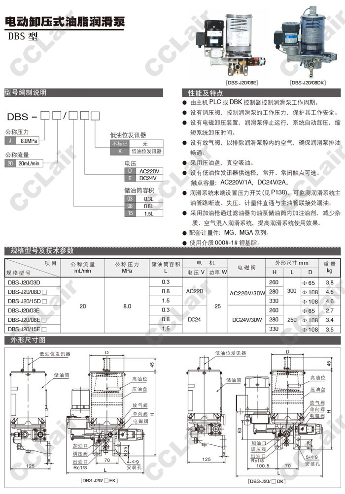 DBS-J20/03D,DBS-J20/08DK,DBS-J20/15DK,DBS-J20/03E,DBS-J20/08EK,DBS-J20/15EK,電動泄壓式油脂潤滑泵 |