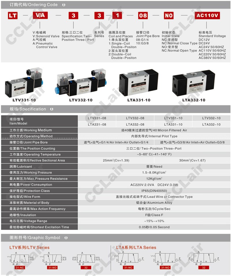 LTA331-08,LTA332-08,LTA331-10,LTA332-10,三口二位氣控閥