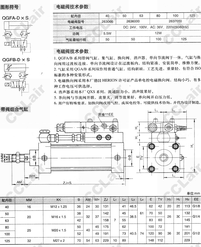 QGFA-40,QGFA-50,QGFA-63,QGFA-80,QGFA-100,QGFA-125,帶閥組合氣缸
