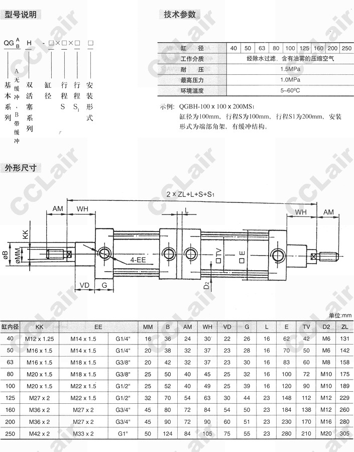 QGBH-40,QGBH-50,QGBH-63,QGBH-80,QGBH-100,QGBH-125,QGBH-160,QGBH-200,QGBH-250,雙活塞氣缸 |