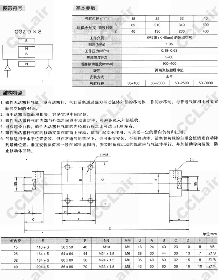 QGZ-15,QGZ-25,QGZ-32,QGZ-40,磁性無(wú)活塞桿氣缸