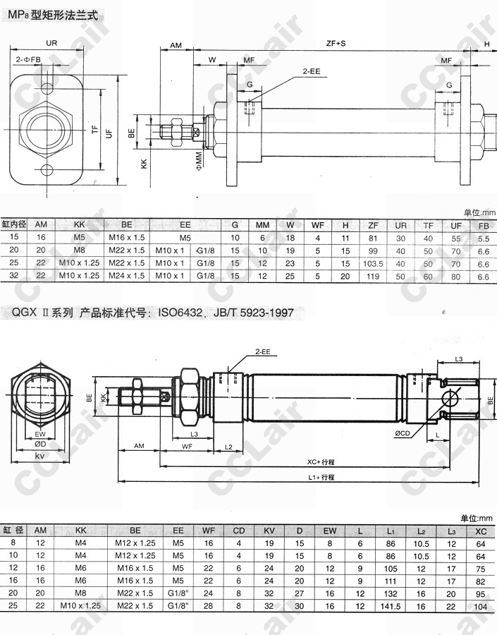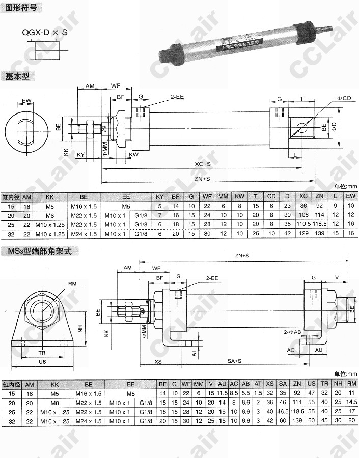 QGX-15,QGX-20,QGX-25,QGX-32,雙作用小型氣缸