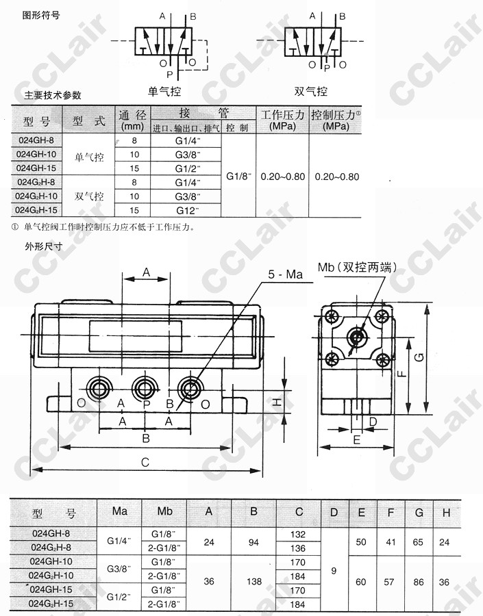 024GH-8,024GH-10,024GH-15,024G2H-8,024G2H-10,024G2H-15,二位四通氣控換向閥