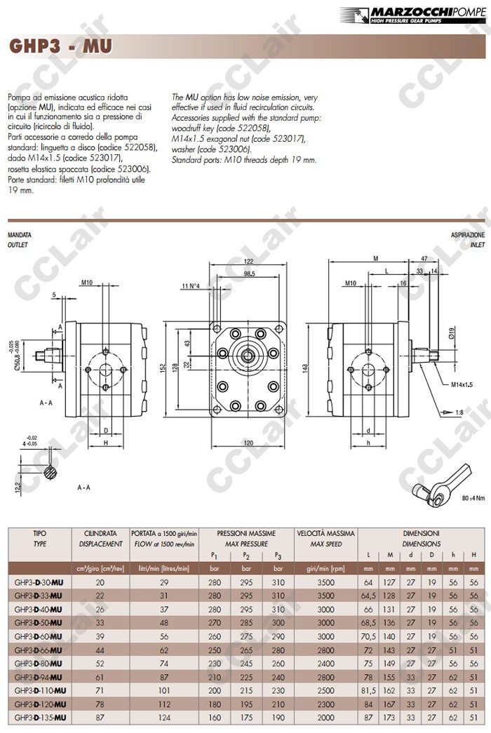 GHP3-D,GHP3-D-30-MU,GHP3-D-33-MU,GHP3-D-40-MU,GHP3-D-50-MU,GHP3-D-60-MU,MARZOCCHI齒輪油泵