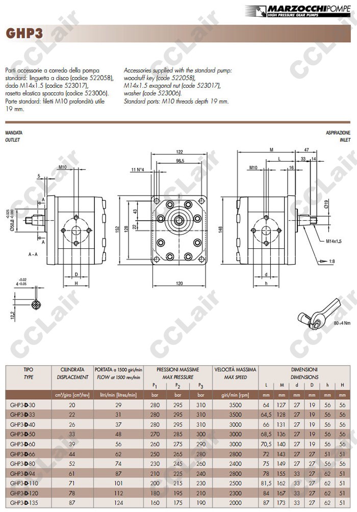 GHP3-D,GHP3-D-30,GHP3-D-33,GHP3-D-40,GHP3-D-50,GHP3-D-60,GHP3-D-66,GHP3-D-80,MARZOCCHI齒輪油泵