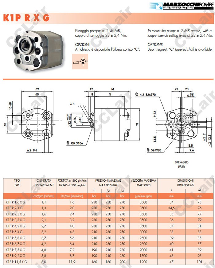 K1PR1.6,K1PR1.6XG,K1PR2XG,K1PR2.5XG,K1PR3.3XG,K1PR4.2XG,K1PR5XG,K1PR5.8XG,MARZOCCHI齒輪油泵 |