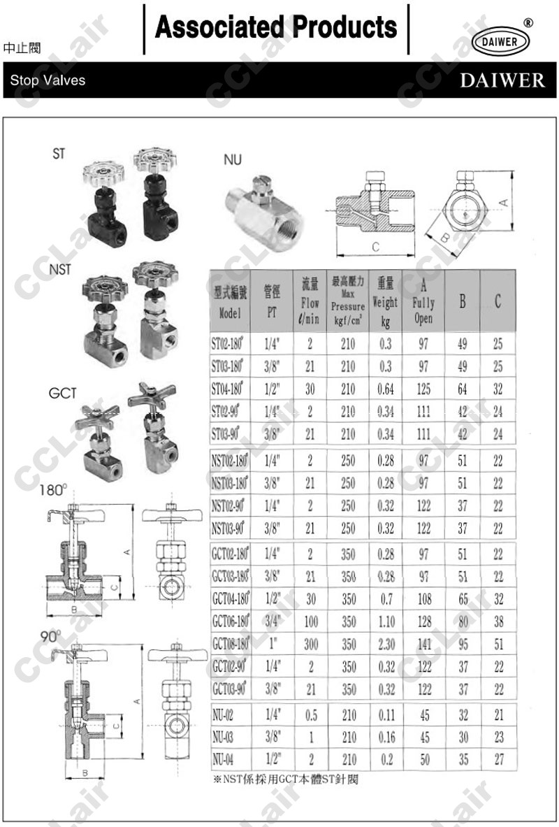 ST02,ST03,ST04,NST02,NST03,GCT02,GCT03,GCT04,GCT06,NU-02,NU-03,NU-04,DAIWER中止閥