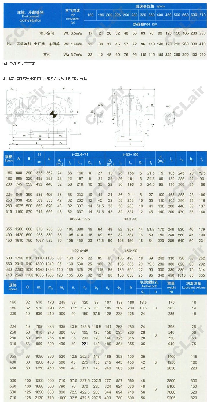 因此:Pc=P1·KA·Ks·KR=300×1.25×1×1.6=600(kW)查表9,ZDY型規(guī)格為355齒輪箱的公稱功率PA=738kW>Pc,