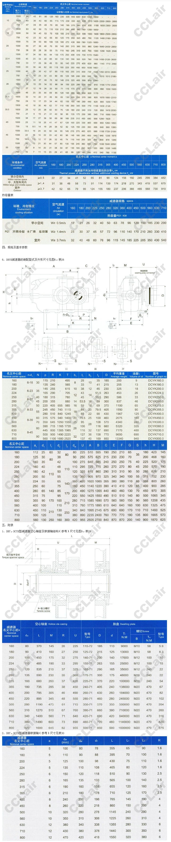 6.DCY、DCYK型減速器公稱功率PA見表19,熱功率PGl見表20。
