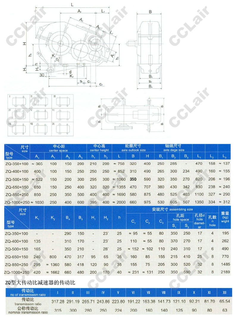 ZQ250,ZQ350,ZQ400,ZQ500,ZQ650,ZQ750,ZQ850,ZQ1000,ZQ350+100,ZQ400+100,大傳動(dòng)比圓柱齒輪減速機(jī)