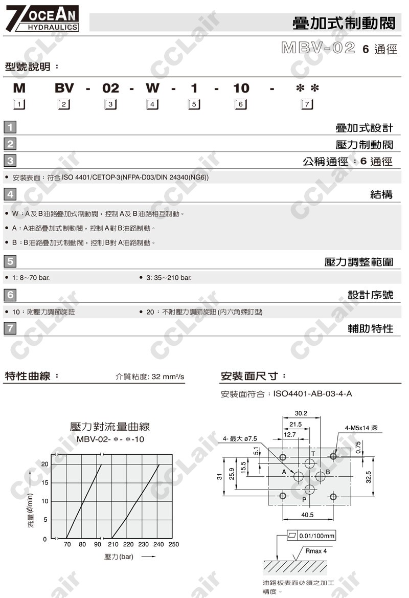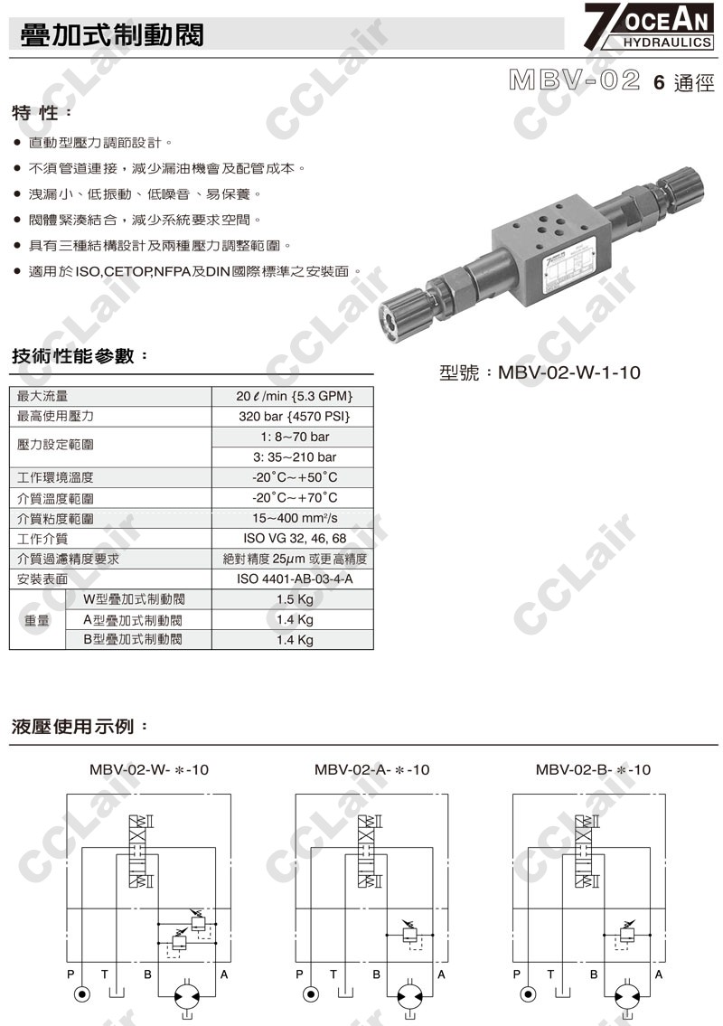 MBV-02-W,MBV-02-A,MBV-02-B,MBV-02-W-1-10,MBV-02-A-1-20,MBV-02-B-3-20,7OCEAN七洋疊加式壓力制動閥