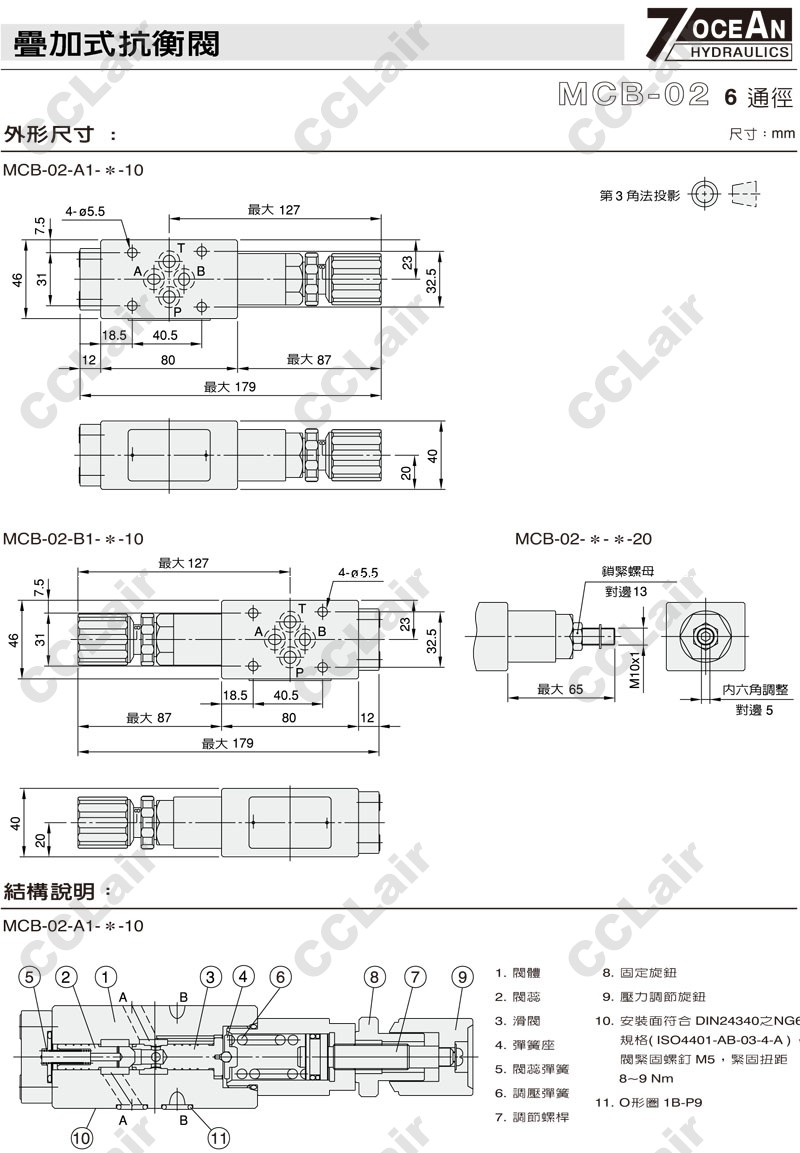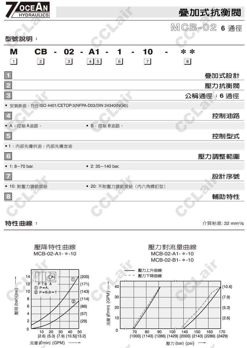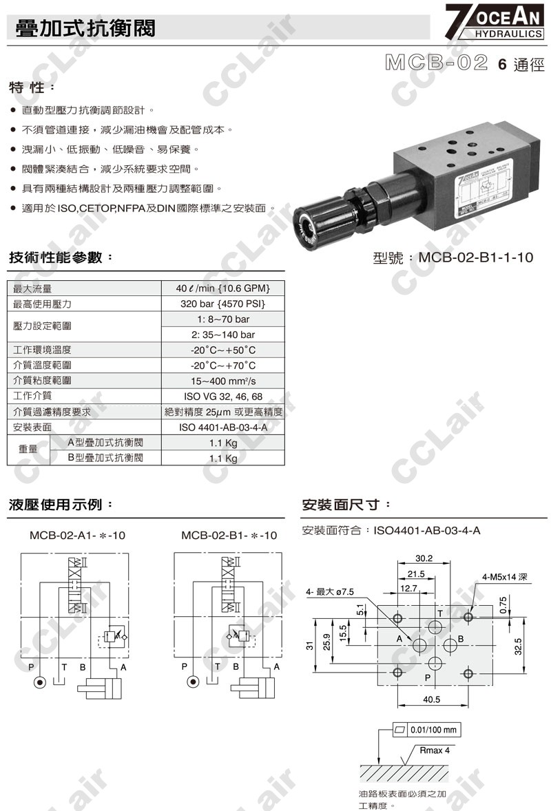 MCB-02-A1,MCB-02-B1,MCB-02-A1-2-20,MCB-02-B1-2-10,7OCEAN七洋疊加式壓力抗衡閥