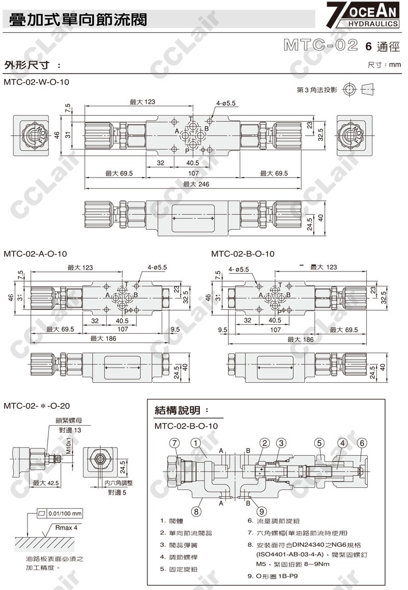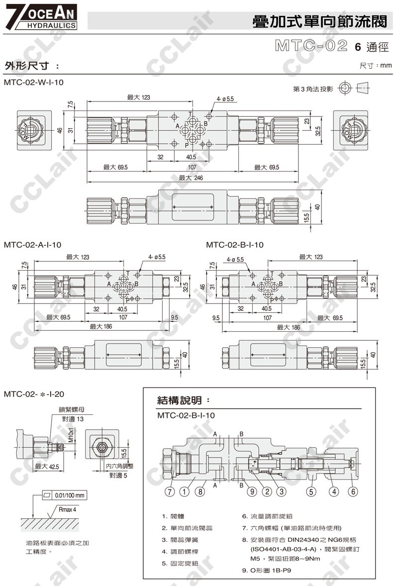 MTC-02-W,MTC-02-A,MTC-02-B,MTC-02-A-I-10,MTC-02-W-O-20,MTC-02-B-I-20,7OCEAN七洋疊加式單向節(jié)流閥