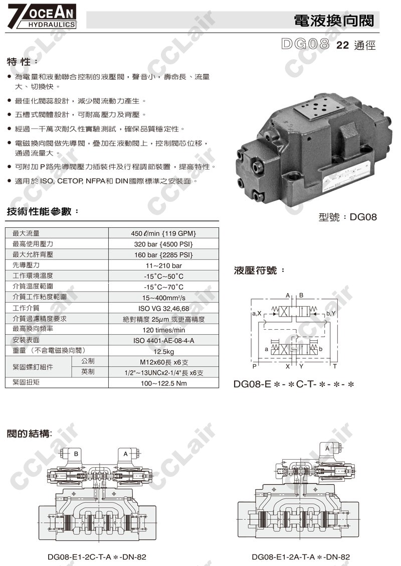 DG08-E1,DG08-E2,DG08-E1-11BL-ET-A110-DN-82,DG08-E2-11BL-E-A120-DN-82,7OCEAN七洋電液換向閥