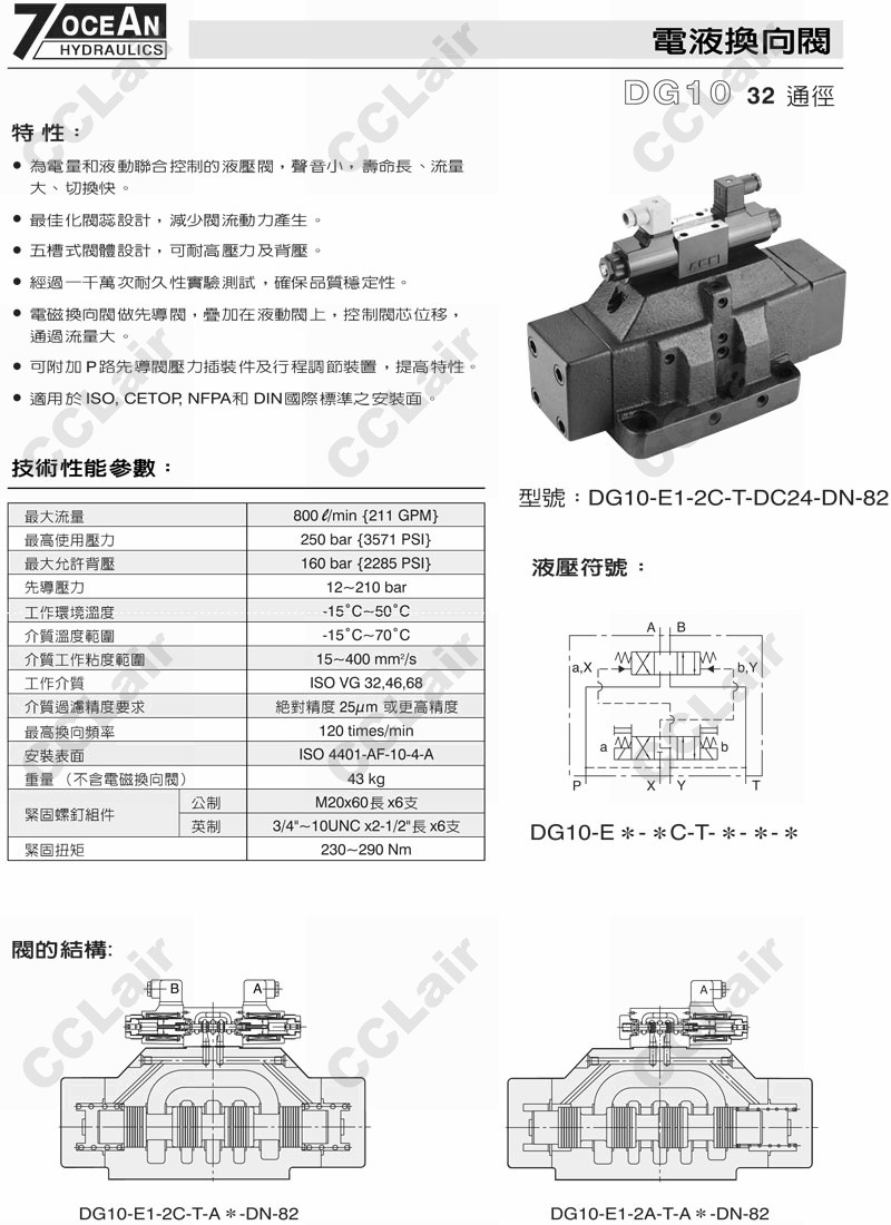 DG10-E1,DG10-E2,DG10-E1-11BL-ET-A110-DN-82,DG10-E2-11BL-E-A120-DN-82,7OCEAN七洋電液換向閥
