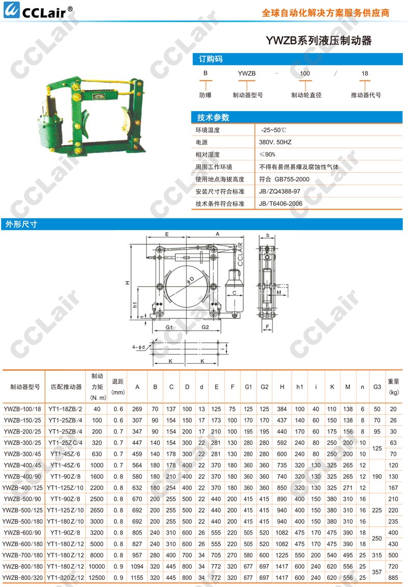 YWZB-100,YWZB-150,YWZB-200,YWZB-300,YWZB-400,YWZB-500,YWZB-600,YWZB-700,YWZB-800,BYWZB-300,電力液壓塊式制動(dòng)器