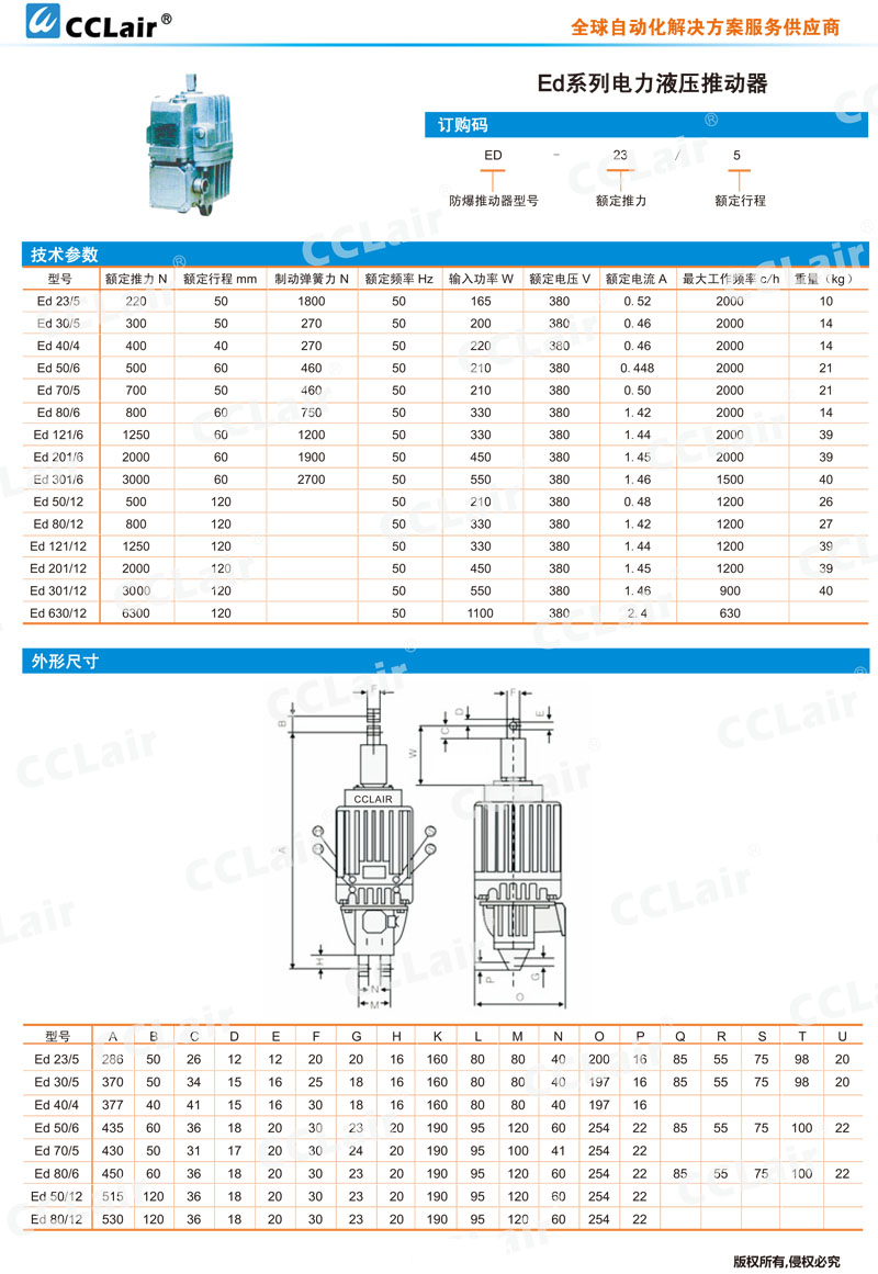 Ed-23,Ed-30,Ed-40,Ed-50,Ed-70,Ed-80,Ed-121,Ed-201,Ed-301,Ed-630,Ed-70/5,電力液壓推動(dòng)器